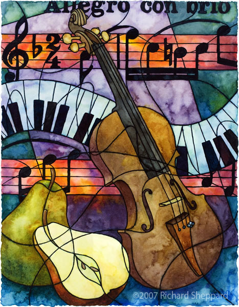 AVAILABILITY:  Original Watercolor (sold) Giclée prints available: Small: 7″ x 9″ giclée print (matted in archival white mat ready to frame in 11″ x 14″ frame) $50 Medium: 14.25″ x 18.25″ giclée print (matted in archival white mat ready to frame in 20″ x 24″ frame) $175 Please contact Richard Sheppard at Richard@Artstudios.com for purchasing information.  ÂJazz Tonight